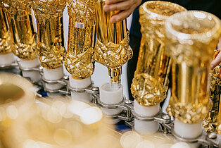 There are 2 semi-automatic lines for uniquely shaped bottles and 2 fully automated lines with a bottling speed of 2,500 bottles per hour.